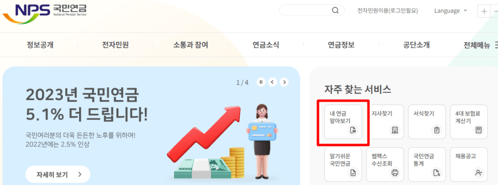 국민연금 공단 사이트에서 확인하기