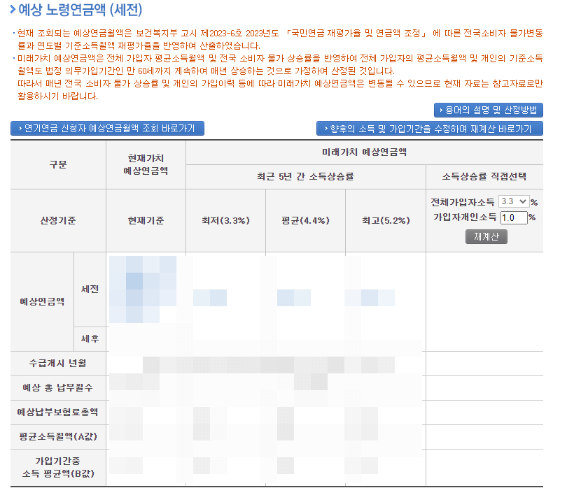 국민연금 예상수령액 조회 완료