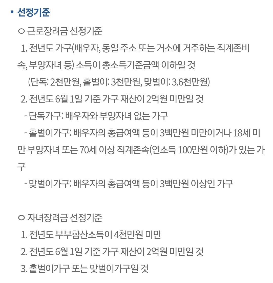 근로장려금 자격조건 과 지급액은 바로확인 가능